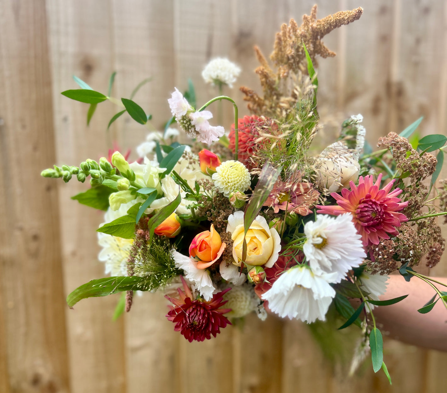For this service you can choose from different colour palettes but due to the seasonality of the way we grow, we cannot guarantee certain flowers. We promise that we will always use the best from the field. Our style of floristry is fitting with our flowers: loose, country garden and little whimsical.